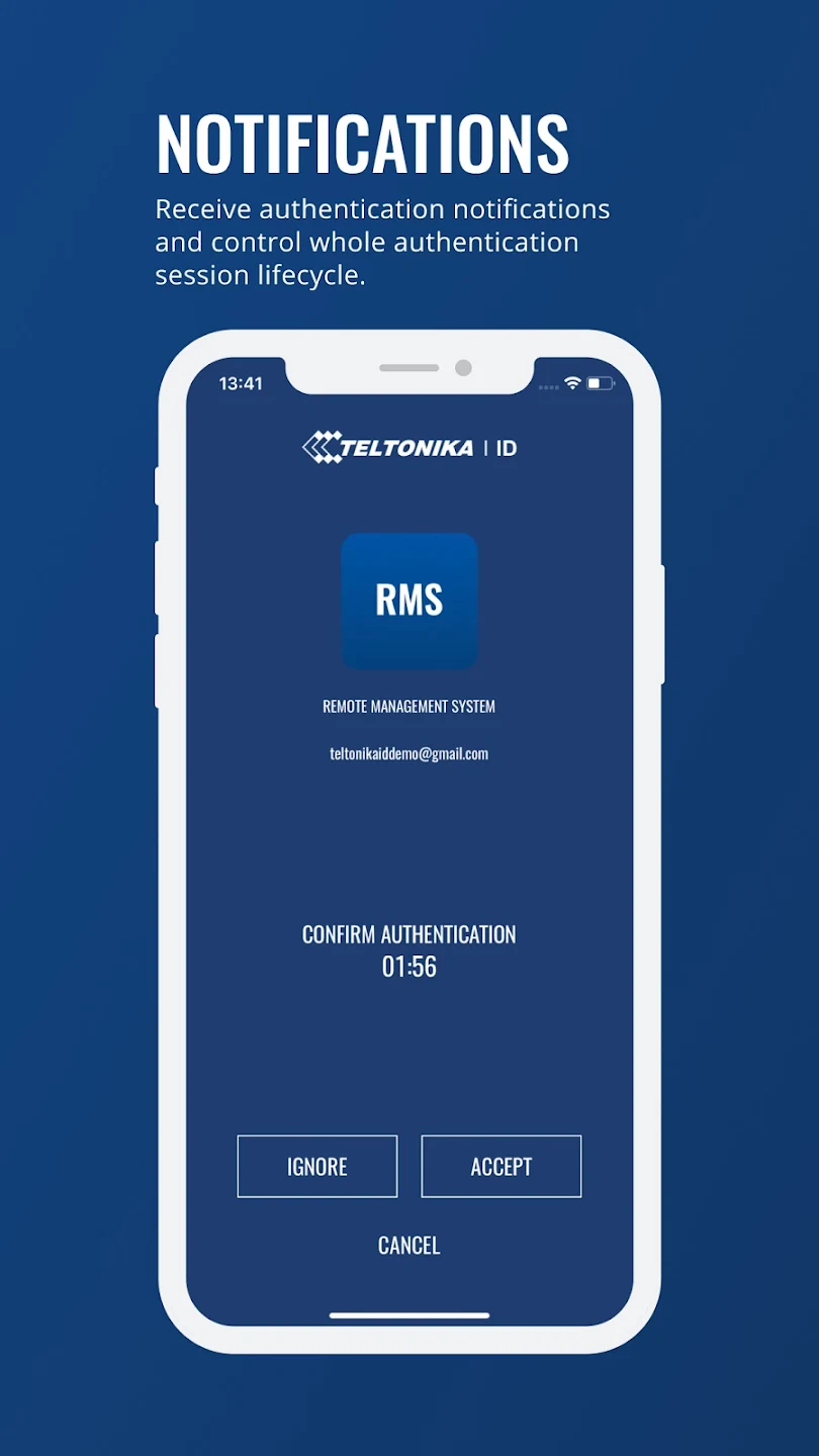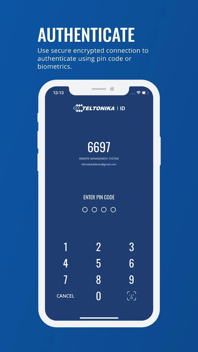 Diseñada como una plataforma de autenticación centralizada, Teltonika ID combina la biometría a nivel de dispositivo, incluyendo Face ID en iOSand la verificación biométrica o PIN en Android , con una autenticación segura de dos factores. Este enfoque permite garantizar la identidad y vincular los dispositivos a los sistemas Teltonika compatibles con Teltonika ID.
