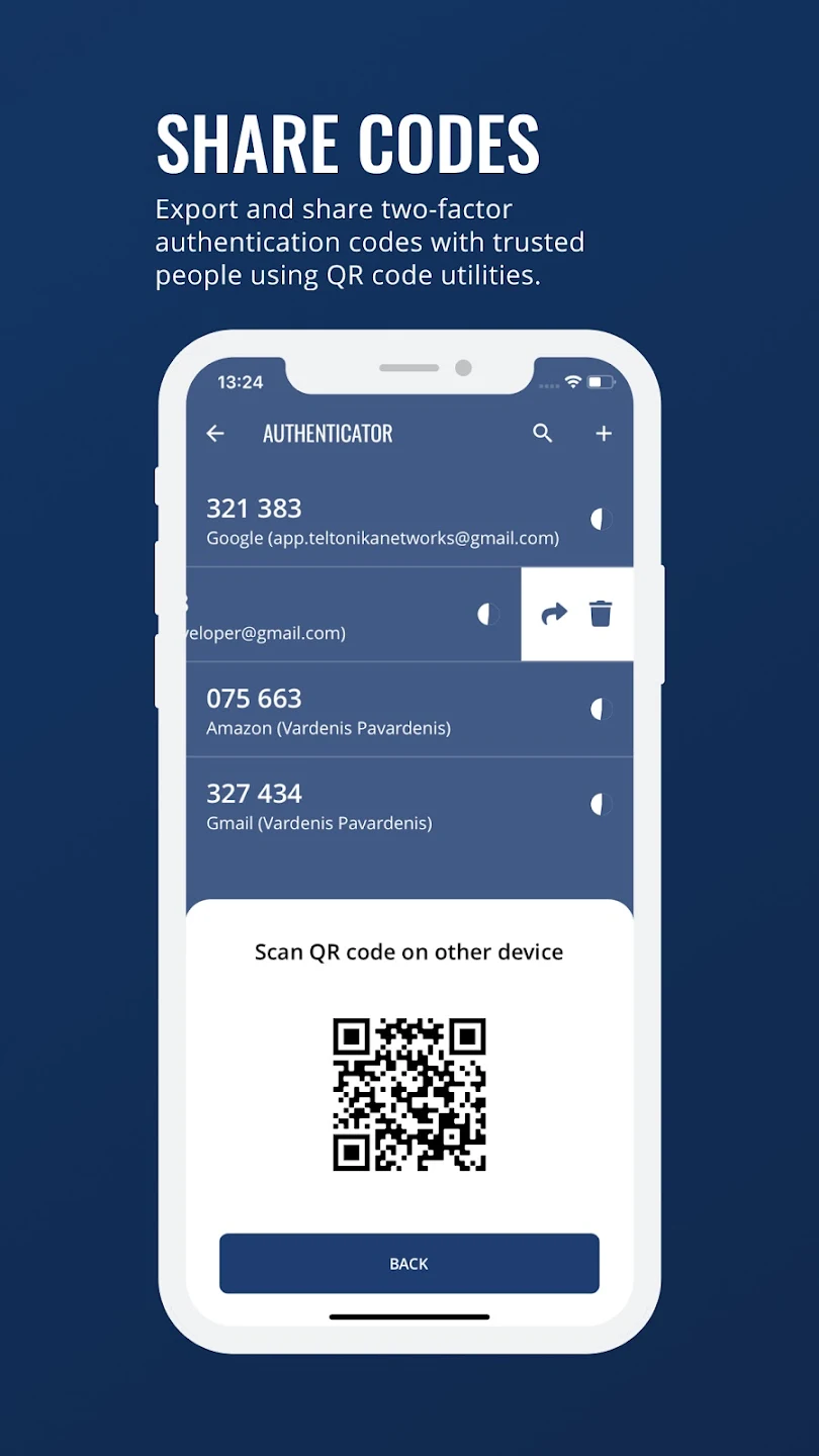 La aplicación proporciona un único lugar para gestionar las solicitudes de autenticación en tiempo real y almacenar los códigos de verificación en una bóveda cifrada. Cuando sea necesario, estos códigos pueden exportarse mediante utilidades QR y compartirse con usuarios de confianza o transferirse a otro dispositivo. Estas funciones mantienen una protección sólida a la vez que permiten que las tareas diarias sean eficientes e intuitivas.