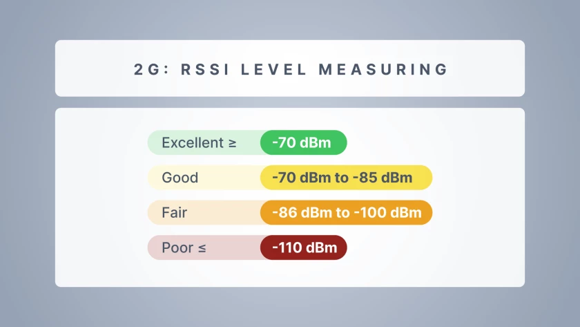 Aunque RSSI proporciona una descripción general básica, no refleja la calidad de la señal, como el ruido, las interferencias o la congestión de la red. Aun así, en los sistemas 2G en los que no se dispone de métricas avanzadas, RSSI sigue siendo el principal punto de referencia para evaluar la conectividad.