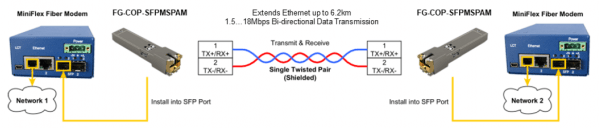 Nuestro partner FlexDSL ha lanzado al mercado el FG-COP-SFPMFPAM que es un SFP que incorpora un módem SHDSL de 1 par de cobre con velocidades desde 1,5Mbps a 18Mbps y un alcance hasta 6,2Km (las velocidades y los alcances dependen del tipo y calidad del cableado).
