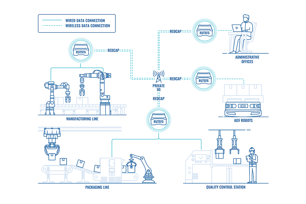 Esta eficiencia se consigue gracias a la conectividad del router 5G RUT271 RedCap. Hay más detalles sobre cómo funciona, por supuesto, así que eche un vistazo a este caso de uso.