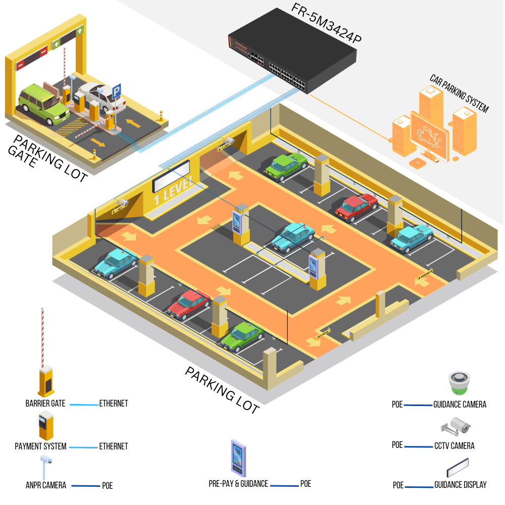 Los conmutadores PoE de Fiberroad: la columna vertebral de la infraestructura de estacionamientos inteligentes